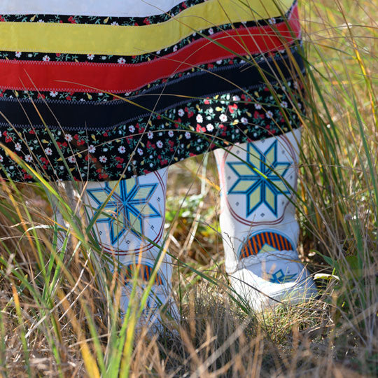 Melissa, a Mi'kmaw woman from Abegweit First Nation, located on Epekwitk (Prince Edward Island, Canada); grew up immersed in cultural teachings and surrounded by a family of basket makers. From a young age, she expressed her artistry through regalia and beadwork, later delving into quillwork, a traditional skill of her maternal grandfather’s ancestors. Accepted into a Mi'kmaq Quill Art apprenticeship in 2015, Melissa mastered traditional insertion techniques and studied cultural teachings and historic publications. Quillwork involves inserting porcupine quills into birchbark, edged with quills, sweetgrass, or spruce root. Through her apprenticeship, Melissa learned harvesting protocols and traditional design geometry, later contributing to the establishment of a community of skilled quill workers. She debuted as a professional Mi'kmaq quill artist in 2019, and her work has been exhibited in galleries across Canada and the United States. She continues to harvest with her family and to train young artists in her community.