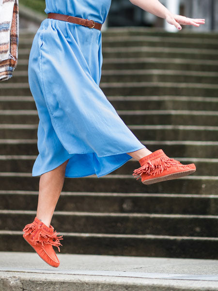 Across Turtle Island, fringe has long held meaning. Fringe can represent a connection to the natural world — mimicking grasses, flowing water, or animal movement. For makers and wearers, it was a way to express identity, care, and connection. Different Nations and regions developed distinct styles of fringe — short and thick, long and delicate, which help signify tribal affiliation or family lineage.