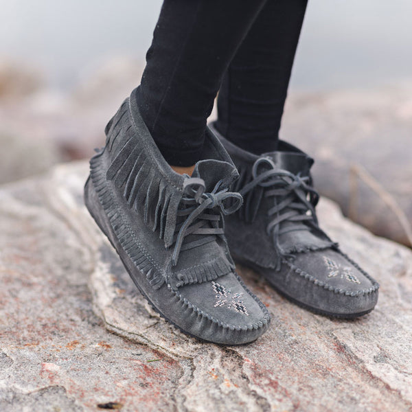 Nous fabriquons nos mocassins et nos mukluks pour tous. En achetant chez nous, vous participez à une appréciation culturelle, et non à une appropriation culturelle. En achetant chez Manitobah, vous soutenez directement les peuples autochtones et célébrez leur culture de manière authentique et significative, ce qui nous permet d'atteindre notre objectif : créer un impact positif dans les communautés autochtones.