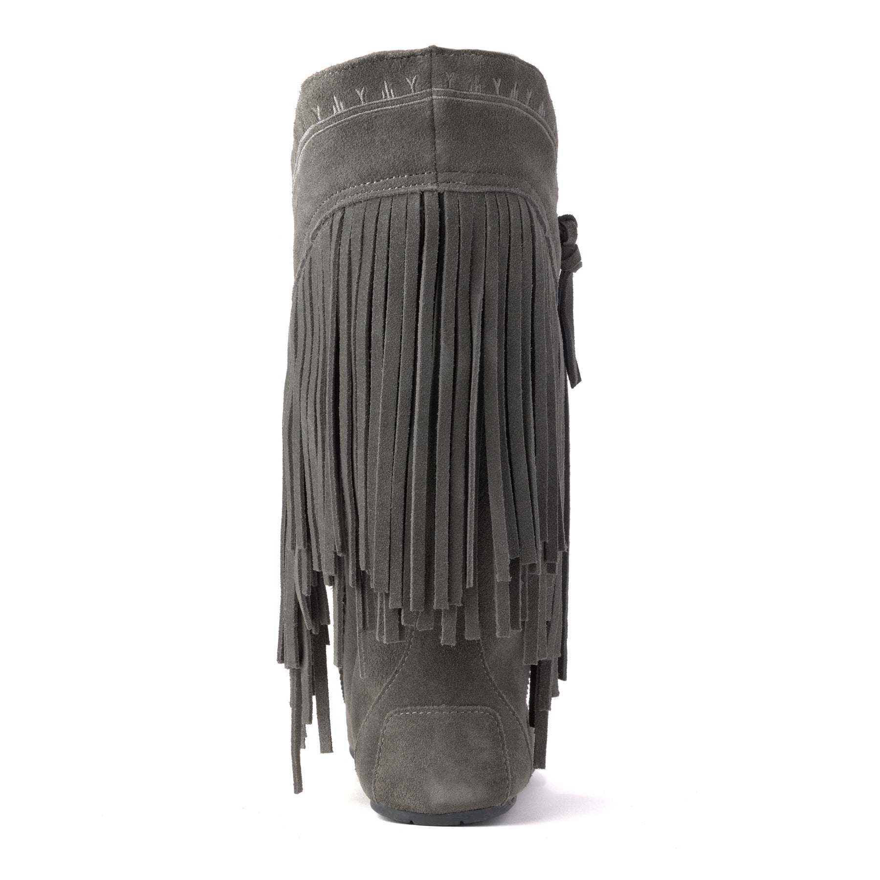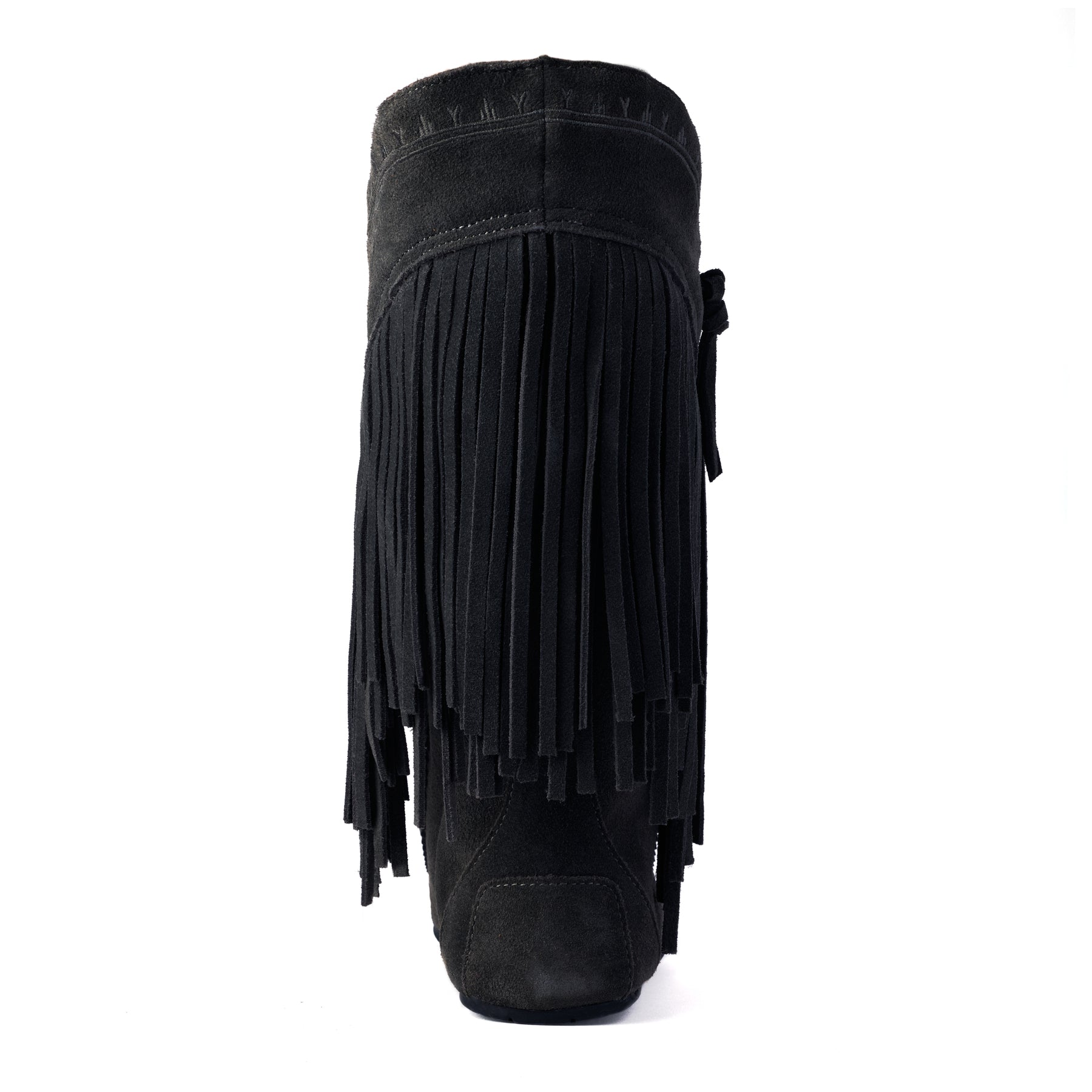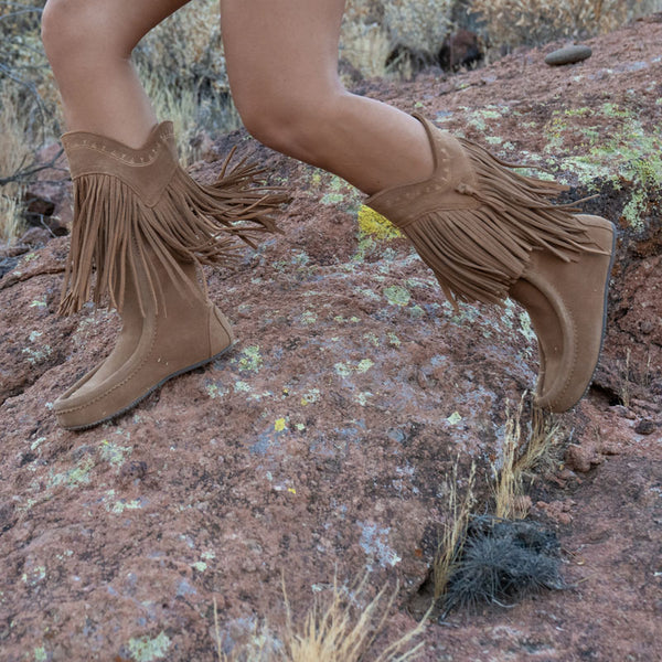 I love this boot! Fits perfectly true to size. I usually wear an 8 and I bought an 8. With a normal or thin sock or even barefoot it fit just a little snug the first day and then stretched to my foot to feel perfect and true to size and a glove. It was a little snug to get the ankle and foot in the first day, with no zipper but it gets easier as loosens to your foot and you put it on a few times. I love my 8 size in black. I did also buy the gray in the 9. Love it too. It slides on like butter. Actually love there is no zipper on them. Pefect height on my leg. I can wear it with a normal sock or a thick warm pair of socks in the fall or winter since I live in Wisconsin. The 9 is a little bit big for me, but a thick sock can help, and it makes sense because I am a size 8 and 9 is always large on my foot. I might need the third color they are that perfect. I have very high arches and I love the bendy sole of these but also the comfort and strength and stability of it too. I have ankle arthritis and and no cartilage left and these were a dream walking, standing and dancing. I love the turtles on the bottom too. Quality is amazing, no tearing or scuffing or wearing; after much walking and many wears. Very fashionable. Tons of compliments. I love dancing in them. They were perfect at the concert at Red Rocks in Colorado. I love the sound as you walk. I cannot recommend these enough and I wish I could rate them higher than 5 stars. I love that I am supporting the Indigenous…