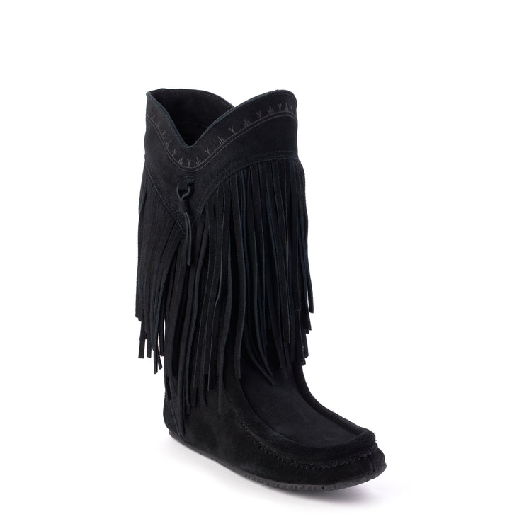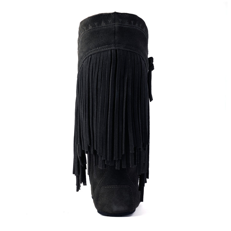 Both styles of children's mukluks are waterproof. They have been treated with our AuthenTEC waterproofing system; treated hide and an internal flexible coating that is inspired by pine pitch and spruce gum. Manitobah conducts rigorous waterproof and temperature testing using a minimum 50,000 flex standard.