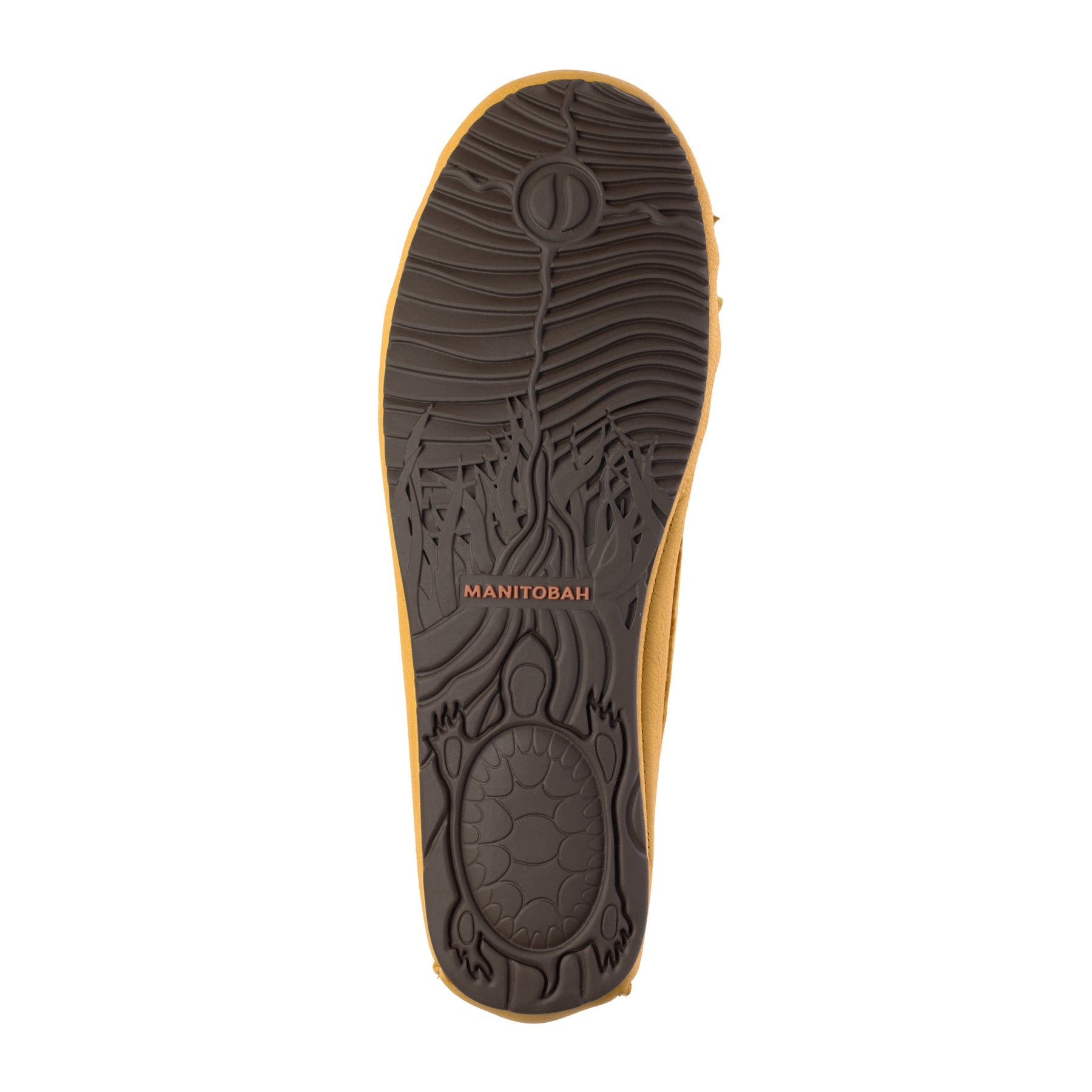 Moccasins and shoes with the Turtle, Birch Berry and Bear sole have a close-to-the-ground feel with a distinct left and right sole. These soles generally fit true to size, and each sole type offers a unique pattern with texture for traction.