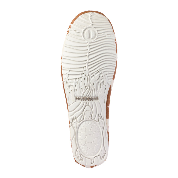 Moccasins and shoes with the Turtle, Birch Berry and Bear sole have a close-to-the-ground feel with a distinct left and right sole. These soles generally fit true to size, and each sole type offers a unique pattern with texture for traction.