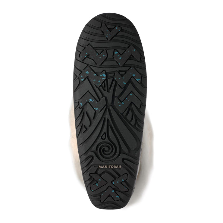 Boots and mukluks with the Two Rivers sole have a more contoured fit with a distinct left and right sole. It offers a closer-to-the-foot feel, supportive midfoot structure, and modern boot comfort. Deep grooves and textured pads provide traction on snow and ice.