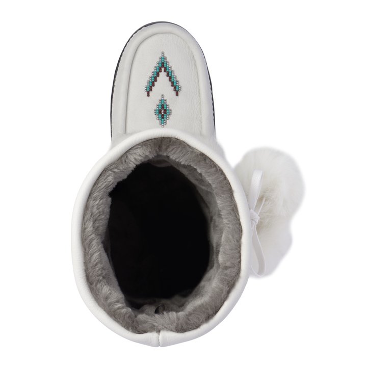 Both styles of children's mukluks are waterproof. They have been treated with our AuthenTEC waterproofing system; treated hide and an internal flexible coating that is inspired by pine pitch and spruce gum. Manitobah conducts rigorous waterproof and temperature testing using a minimum 50,000 flex standard.
